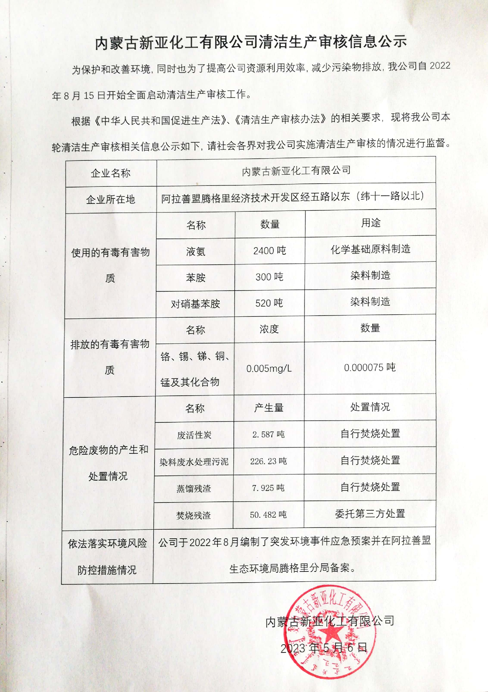 內(nèi)蒙古新亞化工有限公司清潔生產(chǎn)審核信息公示