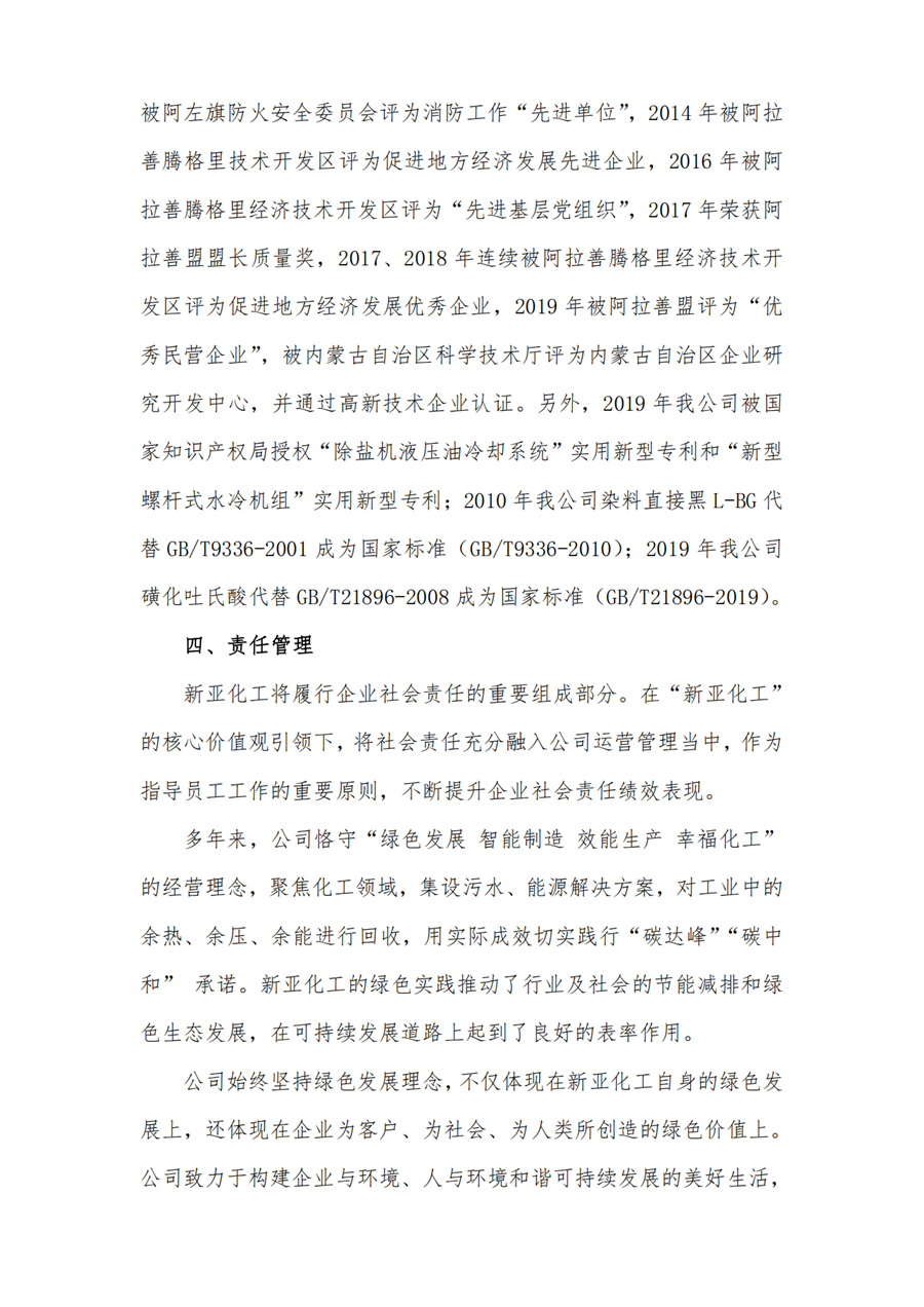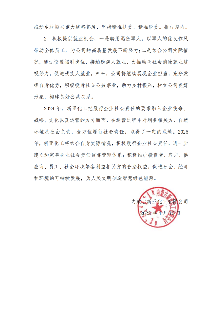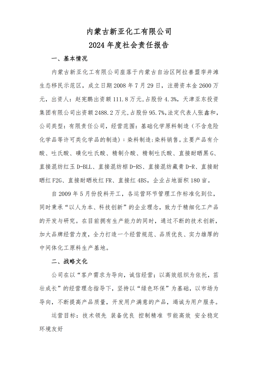 內(nèi)蒙古新亞化工有限公司 2024年度社會責(zé)任報告